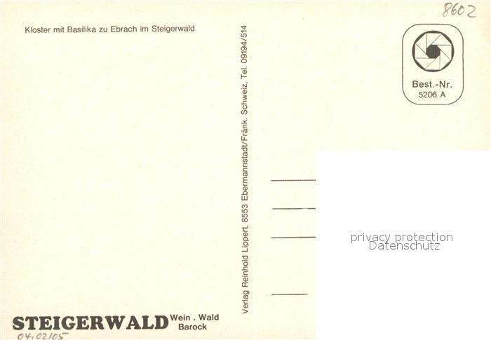 72958358 Ebrach Oberfranken Kloster mit Basilika postalisch nicht gelaufen Erhaltung siehe scans [FriedD77] KatCode: 11110009471128