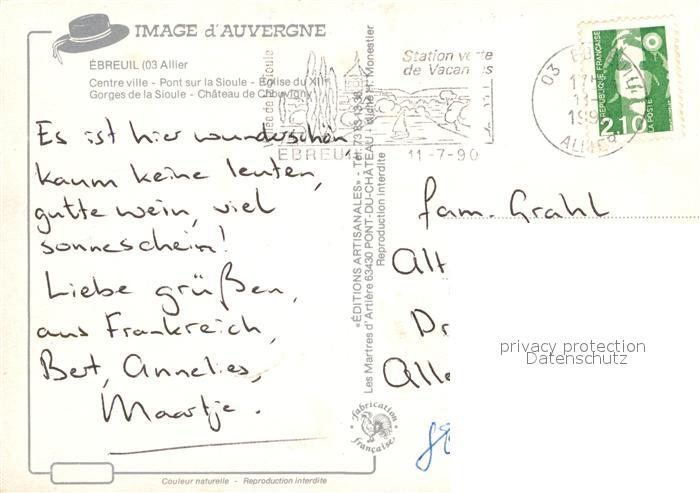 12946956 carte postale Ebreuil Fliegeraufnahme Centre ville Pnt sur la Sioule postalisch gelaufen Erhaltung siehe scans [KathaD81] KatCode: 11170003103107