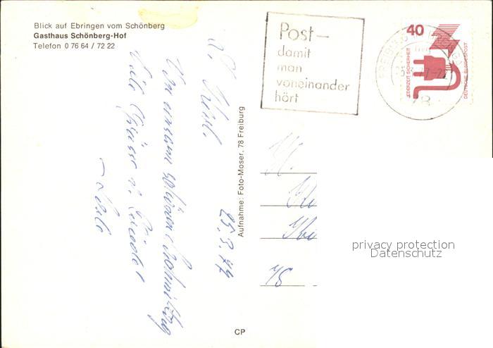 71830541 alte Postkarte Ebringen Breisgau Gasthaus Schoenberg-Hof postalisch gelaufen Erhaltung siehe scans KatCode: 11110008315028