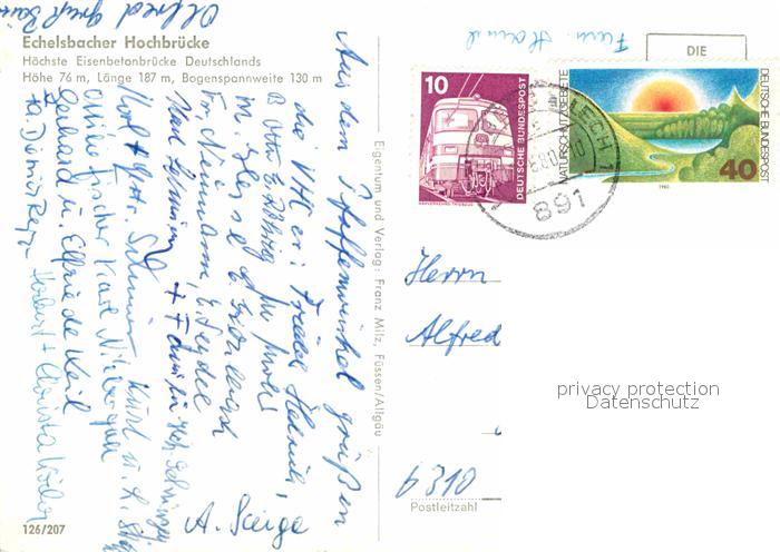 72882004 alte Postkarte Echelsbach Echelsbacher Hochbruecke Hoechste Eisenbetonbruecke Deutschlands postalisch gelaufen Erhaltung siehe scans [FriedD77] KatCode: 11110009180113
