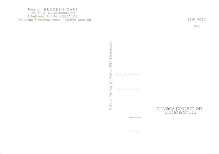 73830942 Echelsbach Pension Bruecken Cafe Ammergauer Berge Schwaigsee Cafe Gaststaette Echelsbacher Bruecke mit Ammer postalisch nicht gelaufen Erhaltung siehe scans [FriedD77] KatCode: 11110009180113