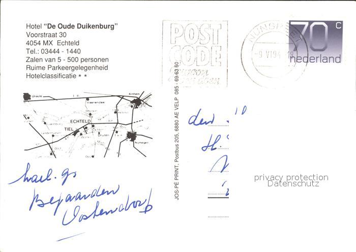 old postcard Echteld Hotel De Oude Duikenburg postalisch gelaufen Erhaltung siehe scans
