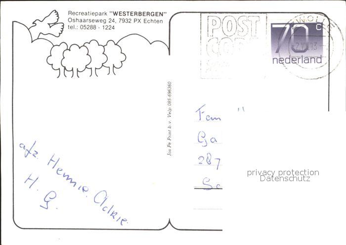 old postcard Echten Recreatiepark Westerbergen Terrasse Swimmingpool Strand Bungalow postalisch gelaufen Erhaltung siehe scans