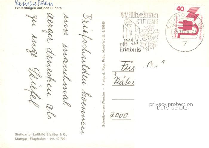 73647337 alte Postkarte Echterdingen Auf den Fildern Fliegeraufnahme postalisch gelaufen Erhaltung siehe scans [WerneD78] KatCode: 11110008116078