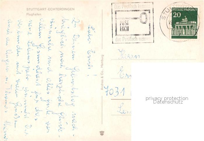 73835753 alte Postkarte Echterdingen Flughafen postalisch gelaufen Erhaltung siehe scans [WerneD78] KatCode: 11110008116078