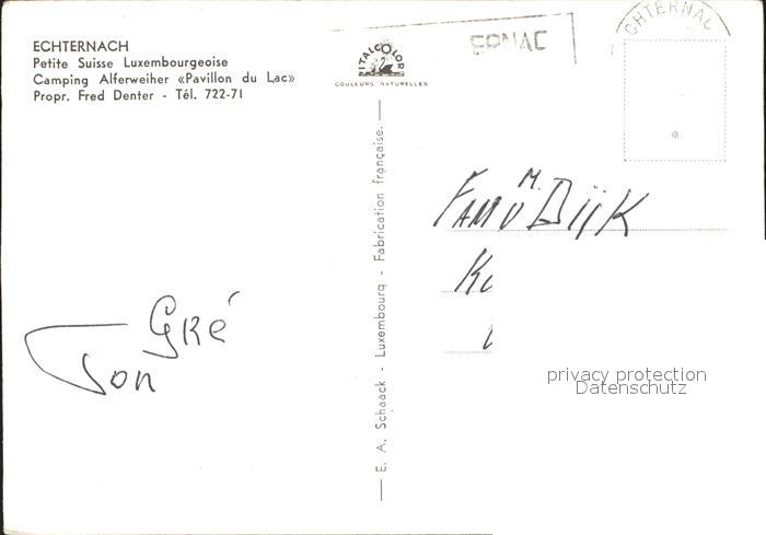 alte Postkarte Echternach Camping Alferweiher postalisch gelaufen Erhaltung siehe scans