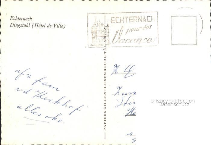 alte Postkarte Echternach Dingstuhl Hotel de Ville postalisch gelaufen Erhaltung siehe scans