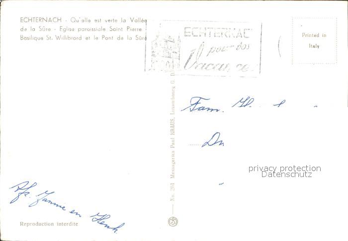 alte Postkarte Echternach Eglise Basilique Pont de la Sure postalisch gelaufen Erhaltung siehe scans