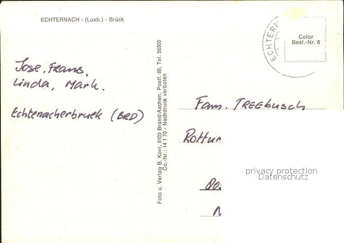 alte Postkarte Echternach Fliegeraufnahme Brueck postalisch gelaufen Erhaltung siehe scans