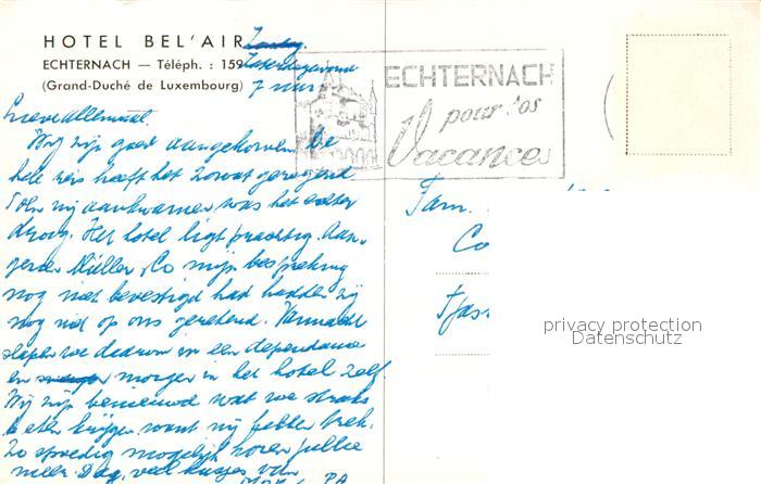 alte Postkarte Echternach Hotel Bel Air postalisch gelaufen Erhaltung siehe scans [WerneD78]