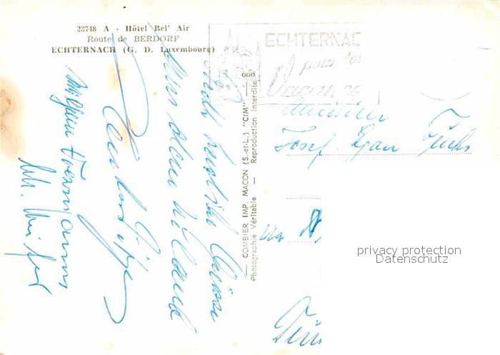 alte Postkarte Echternach Hotel Bel Air Fliegeraufnahme postalisch gelaufen Erhaltung siehe scans [WerneD78]