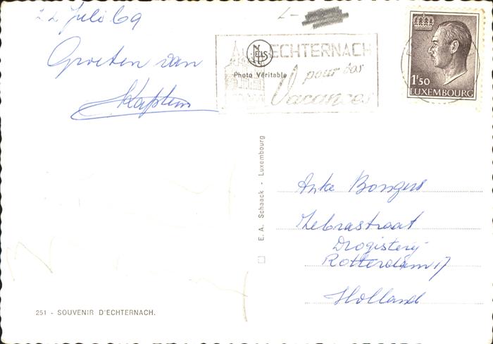 alte Postkarte Echternach Panorama Bruecke Kirche postalisch gelaufen gute Erhaltung