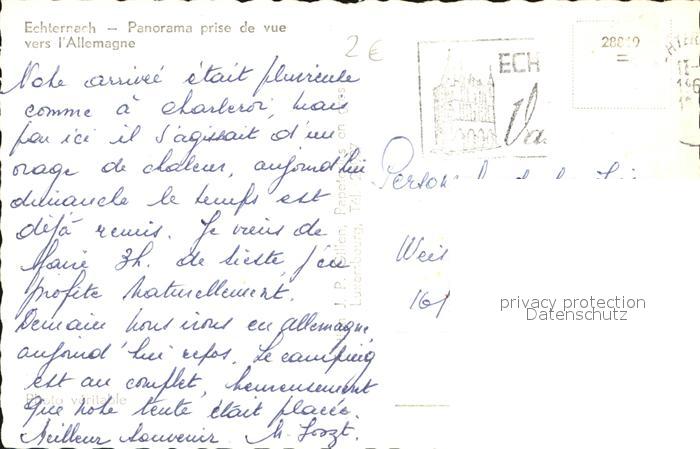 alte Postkarte Echternach Panorama prise de vue vers l’Allemagne postalisch gelaufen Erhaltung siehe scans