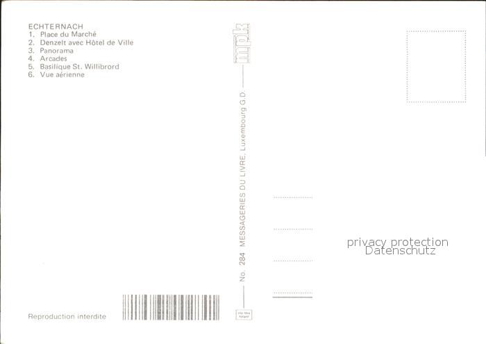 Echternach Place Marche Denzelt Hotel Ville Arcades Basilique St. Willibrord postalisch nicht gelaufen Erhaltung siehe scans