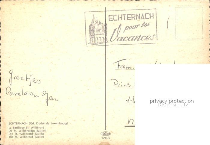alte Postkarte Echternach St. Willibrordus Basilik postalisch gelaufen Erhaltung siehe scans