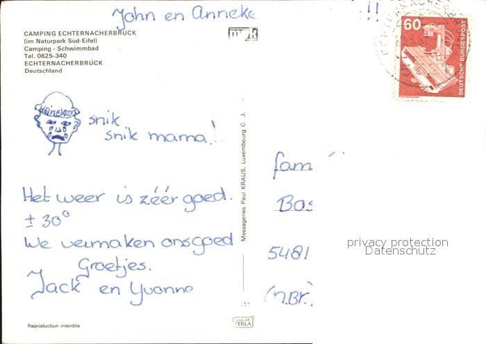 72451212 alte Postkarte Echternacherbrueck Fliegeraufnahme Campingplatz postalisch gelaufen Erhaltung siehe scans KatCode: 11110007232028