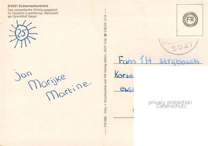 73673232 alte Postkarte Echternacherbrueck Panorama Erholungsort im Deutsch Luxemburgischen Naturpark Sauertal Campingplatz Freibad postalisch gelaufen Erhaltung siehe scans [FriedD77] KatCode: 11110007232028