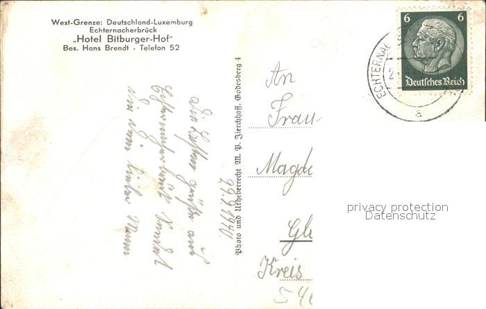 31705757 alte Postkarte Echternacherbrueck Westgrenze Deutschland Luxemburg %fa postalisch gelaufen Erhaltung siehe scans KatCode: 11110007232028