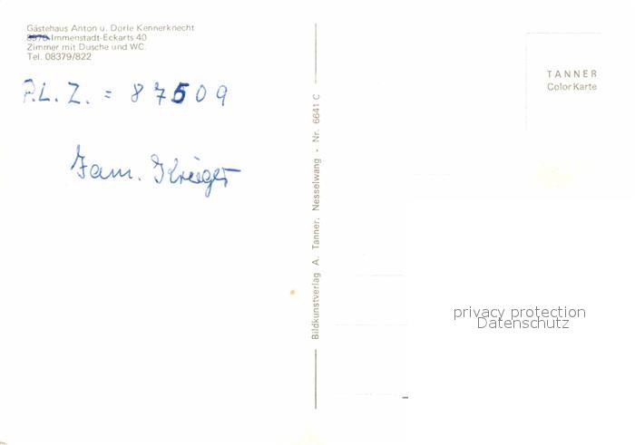 72652031 Eckarts Allgaeu Gaestehaus Kennerknecht Blick zum Gruenten Alpsee Alpenpanorama postalisch nicht gelaufen Erhaltung siehe scans [FriedD77] KatCode: 11110009780124