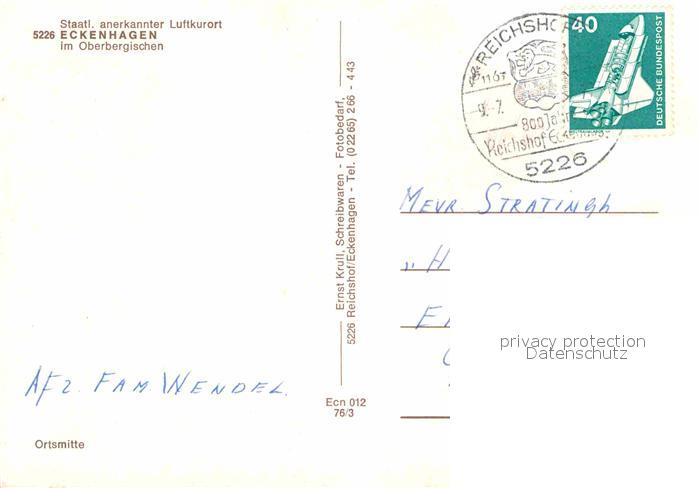 72663537 alte Postkarte Eckenhagen Hauptstrasse Kirche postalisch gelaufen Erhaltung siehe scans [FriedD77] KatCode: 11110005374040