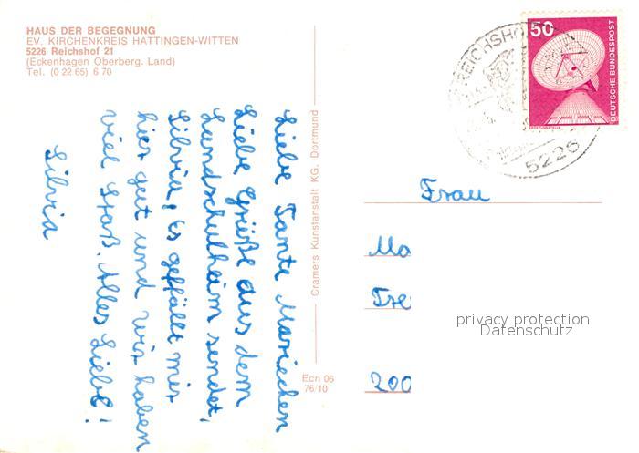 72954388 alte Postkarte Eckenhagen Ortsmotiv mit Kirche Haus der Begegnung Fliegeraufnahme postalisch gelaufen Erhaltung siehe scans [FriedD77] KatCode: 11110005374040