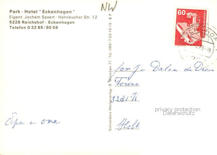 73845605 alte Postkarte Eckenhagen Park Hotel Eckenhagen postalisch gelaufen Erhaltung siehe scans [FriedD77] KatCode: 11110005374040