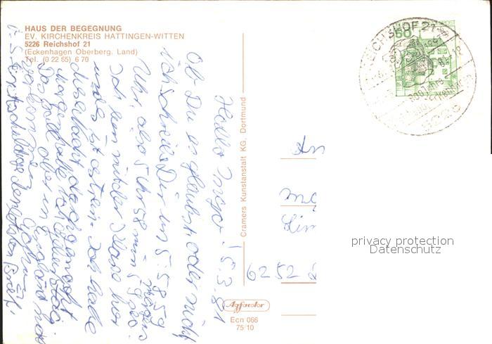 72213953 alte Postkarte Eckenhagen Totalansicht Ev Kirche DJH Blickhaus Ortsblick Hauptstr Kath Pfarrkirche postalisch gelaufen Erhaltung siehe scans KatCode: 11110005374040
