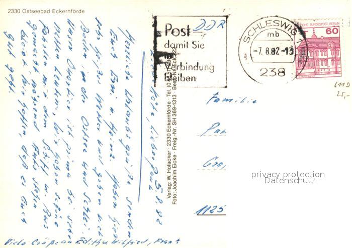 73169861 alte Postkarte Eckernfoerde Fliegeraufnahme postalisch gelaufen Erhaltung siehe scans [KathaD81] KatCode: 11110001058043