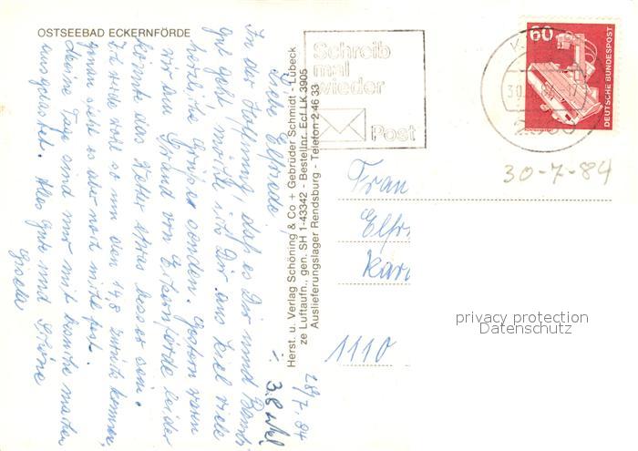 73161768 alte Postkarte Eckernfoerde Fliegeraufnahme postalisch gelaufen Erhaltung siehe scans [PaolaD17] KatCode: 11110001058043