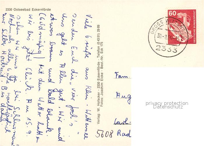 73295190 alte Postkarte Eckernfoerde Fliegeraufnahme Seebruecke Spielplatz Strand postalisch gelaufen Erhaltung siehe scans [WerneD78] KatCode: 11110001058043