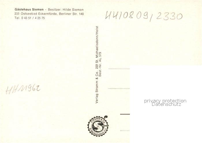 73333119 Eckernfoerde Gaestehaus Siemen postalisch nicht gelaufen Erhaltung siehe scans [LiesaD40] KatCode: 11110001058043