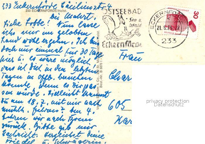 73260089 alte Postkarte Eckernfoerde Kirche Hafen postalisch gelaufen Erhaltung siehe scans [NatalD47] KatCode: 11110001058043