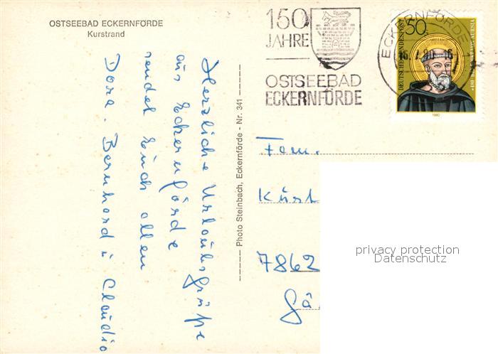 73336628 alte Postkarte Eckernfoerde Kurstrand Seebruecke postalisch gelaufen Erhaltung siehe scans [WerneD78] KatCode: 11110001058043
