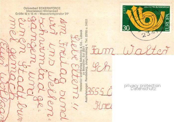73272343 alte Postkarte Eckernfoerde Meerwasser Hallenbad postalisch gelaufen Erhaltung siehe scans [KathaD81] KatCode: 11110001058043