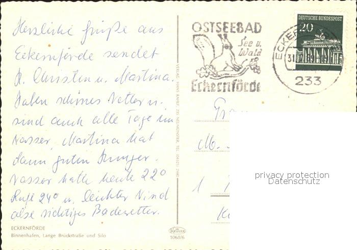 72067770 alte Postkarte ECKERNFoeRDE Ostseebad Binnenhafen postalisch gelaufen Erhaltung siehe scans KatCode: 11110001058043