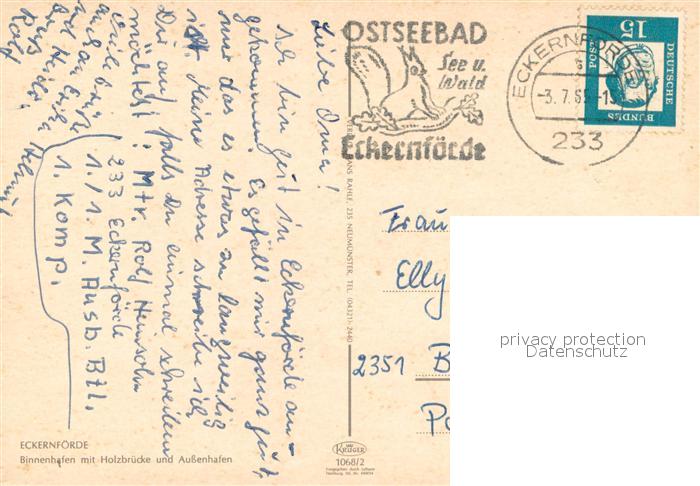 73685287 ECKERNFoeRDE Ostseebad Binnenhafen mit Holzbrueck und Aussenhafen Fliegeraufnahme postalisch gelaufen Erhaltung siehe scans [WerneD78] alte Postkarte Wern Katcode 11110001058043
