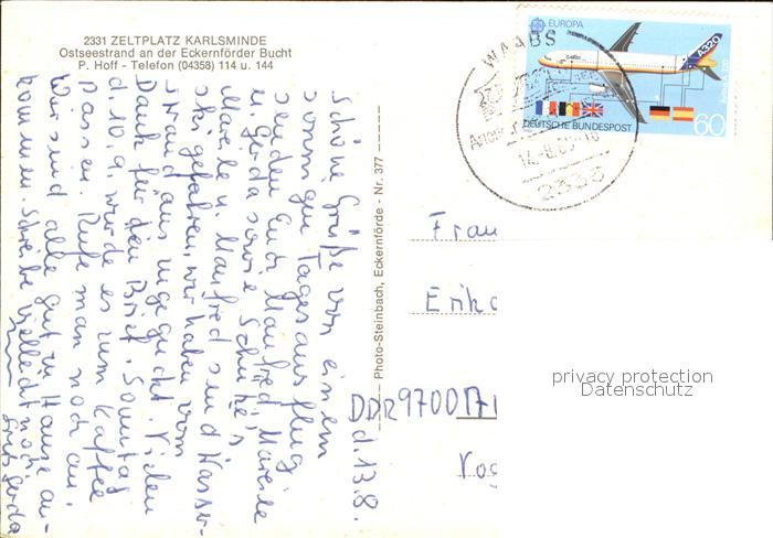 72522510 alte Postkarte ECKERNFoeRDE Ostseebad Campingplatz Karlsminde postalisch gelaufen Erhaltung siehe scans KatCode: 11110001058043