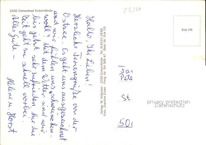 72396243 alte Postkarte ECKERNFoeRDE Ostseebad Fliegeraufnahme postalisch gelaufen Erhaltung siehe scans KatCode: 11110001058043