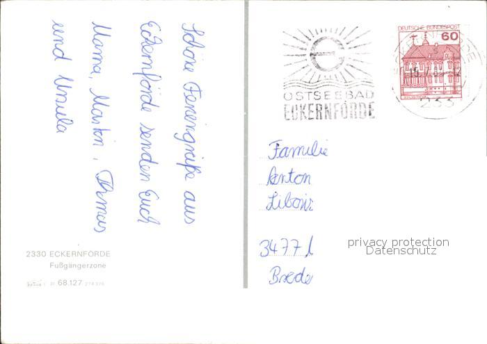 72131272 alte Postkarte ECKERNFoeRDE Ostseebad Fussgaengerzone postalisch gelaufen KatCode: 11110001058043