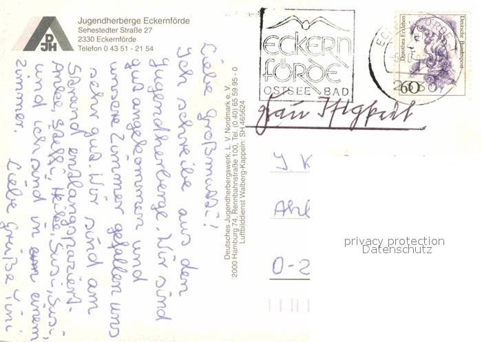 72618116 alte Postkarte ECKERNFoeRDE Ostseebad Jugendherberge Fliegeraufnahme postalisch gelaufen Erhaltung siehe scans [NatalD47] KatCode: 11110001058043
