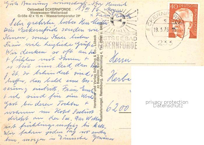 72905653 alte Postkarte ECKERNFoeRDE Ostseebad Meerwasser Wellenbad Restaurant Ostseebad postalisch gelaufen Erhaltung siehe scans [FriedD77] KatCode: 11110001058043