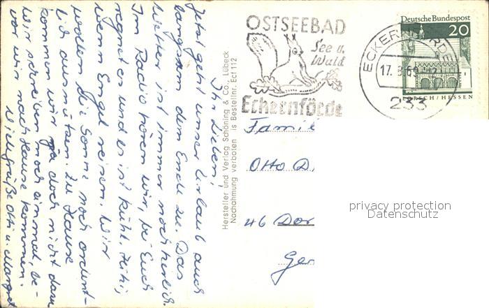 72132787 alte Postkarte ECKERNFoeRDE Ostseebad Promenade mit Strand Kurpark Rathausmarkt Steilufer postalisch gelaufen KatCode: 11110001058043