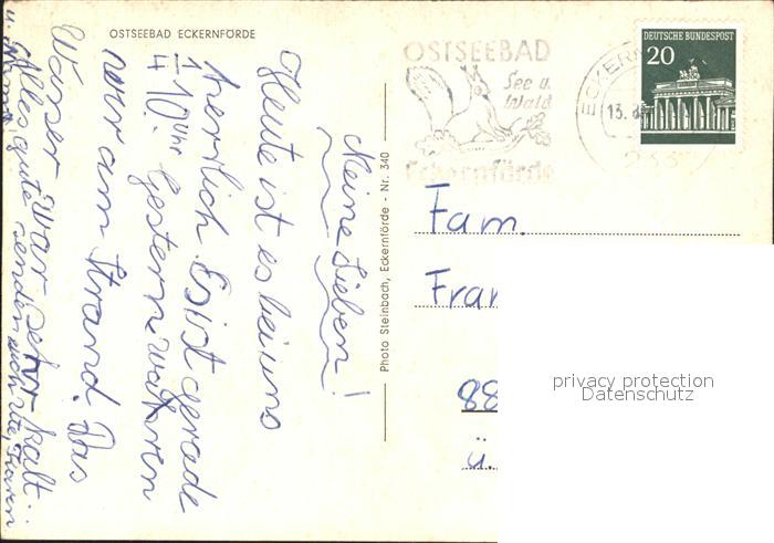 72074456 alte Postkarte ECKERNFoeRDE Ostseebad Strand Segelboot postalisch gelaufen Erhaltung siehe scans KatCode: 11110001058043