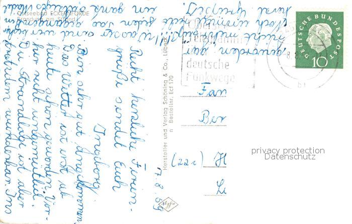 73804872 Eckernfoerde Ostseebad Strandpartie postalisch gelaufen Erhaltung siehe scans [FriedD77] alte Postkarte Frie Katcode 11110001058043