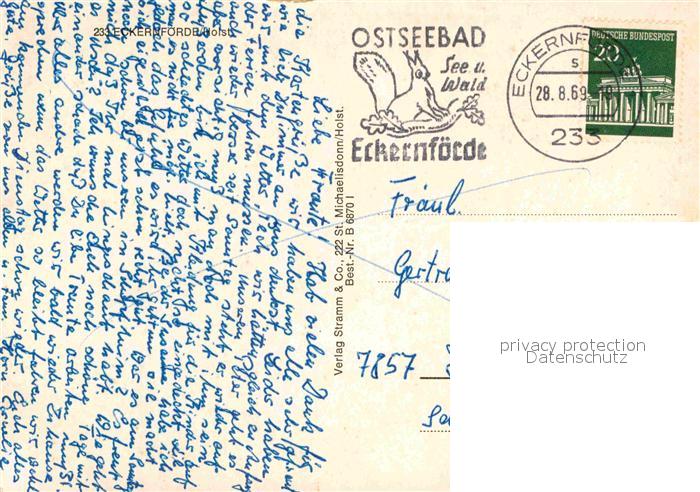 72724812 alte Postkarte ECKERNFoeRDE Ostseebad Teilansichten Hafen Kirche Strand Kueste Schwan Park postalisch gelaufen Erhaltung siehe scans [FriedD77] KatCode: 11110001058043