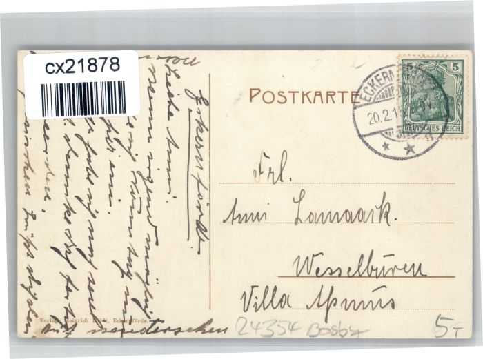 30738460 alte Postkarte Eckernfoerde Stempelabschlag] Herrenhaus Saxtorf postalisch gelaufen KatCode: 11110001058043