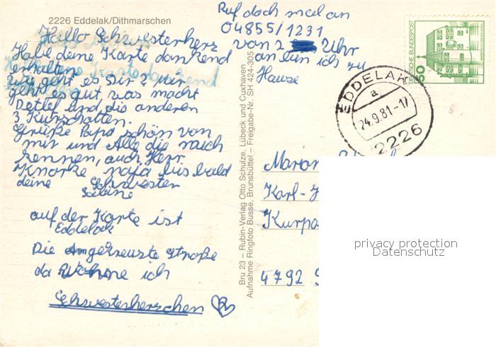 73667120 alte Postkarte Eddelak Fliegeraufnahme postalisch gelaufen Erhaltung siehe scans [WerneD78] KatCode: 11110001051024