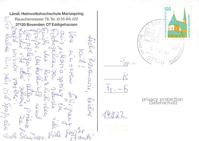 74110941 alte Postkarte Eddigehausen Bovenden Goettingen Niedersachsen Laendl Heimvolkshochschule Mariaspring Gastraum Gymnastik Schulungsraum postalisch gelaufen Erhaltung siehe scans [WerneD78] KatCode: 11110003152004