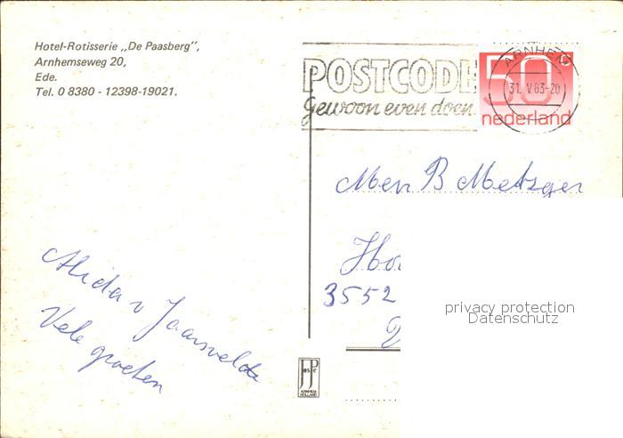 old postcard Ede Netherlands Hotel Rotisserie De Paasberg Gastraeume Bar Reception postalisch gelaufen Erhaltung siehe scans