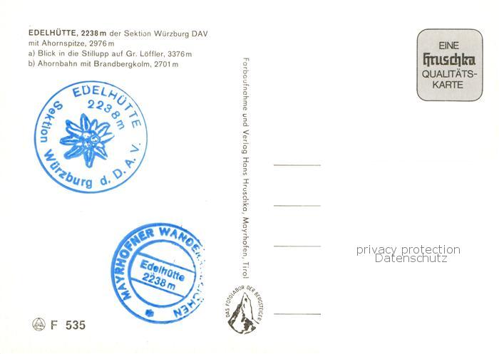 73838579 Edelhuette 2238m Zillertal Tirol AT mit Ahornspitze Stillup Gr Loeffler Ahornbahn mit Brandbergkolm postalisch nicht gelaufen Erhaltung siehe scans [WerneD78] KatCode: 11390335070920